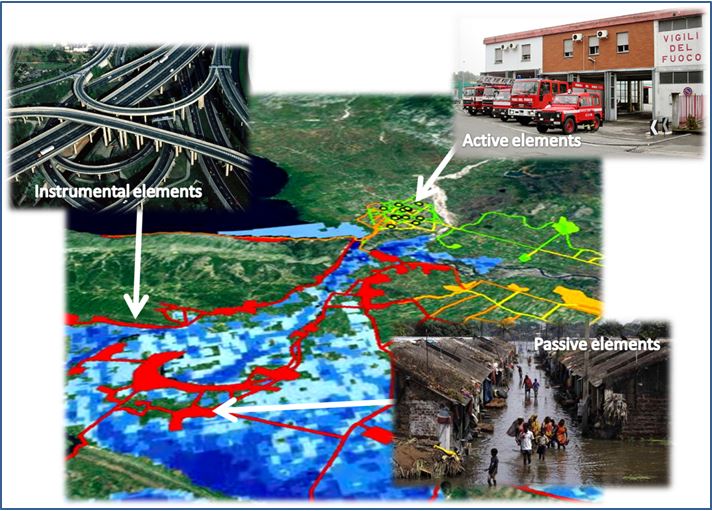 Inside this task, a methodology for the systemic vulnerability assessment of infrastructure networks subject to floods have been developed. In this approach the territorial system is modeled through the application of graph theory : roads, villages , buildings are the nodes of the graph while the edges are represented by their topographic connections. Since the arcs are links that do not take into account the topographical functional dependencies between the elements, this approach can also be applied in areas  known only from remote observation.